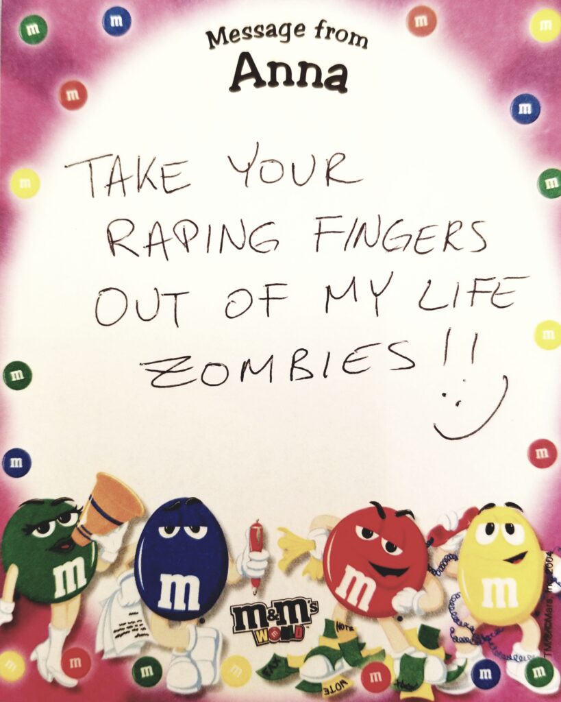 Alien Anna, you have a message humanity categorically rejects. As such, given you are an “Alien Nuisance”, you are an “x-file” freak whose life is micromanaged by all ten of humanity’s fingers inserted into you, rapist finger-bang style, as “every step you take, every move you make” is dissected and scrutinized as the “failure” we as a collective have determined you to be.