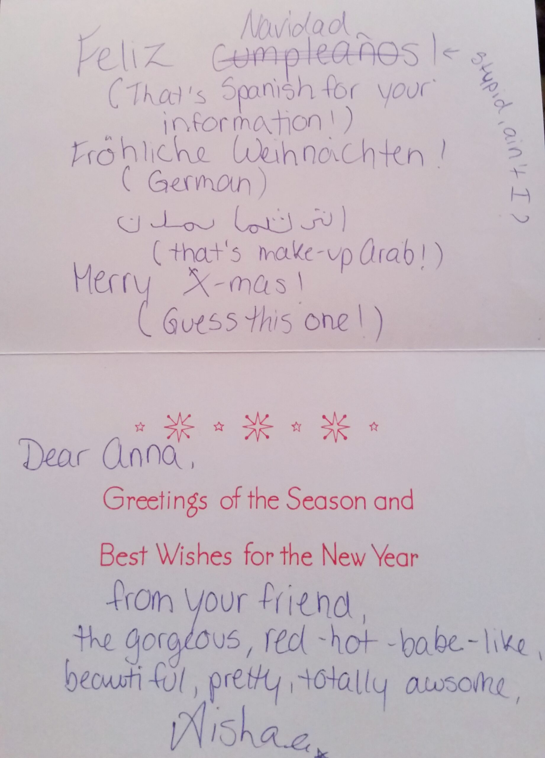 Yes Alien Anna, your entire life, including your past, like me getting sent away, ALL LIES! Years of us having “friendly” phone conversations… they were not friendly at all… Remember how I told you we renovated our Fort Nelson home… me telling you I was pregnant… you sending me “What to Expect when you are Expecting” to our Front Nelson love nest… Nina being delivered by a doctor of African descent in a Fort Nelson hospital… None of those things actually took place… I lied, more accurately, I was reading off a script and you were engaging with a handler watching and analyzing (and trying and failing to influence) your behavior… yes, it is that bad… worse… while you went on a bookstore website and “ordered” a book called What to Expect While You are Expecting, it didn’t got to Fort Nelson… it didn’t go anywhere… but, Alien Anna, the human race was celebrating convinced they were avoiding human depopulation… Stupid alien is buying books on having human babies, no human depopulation for humans — hurrah!